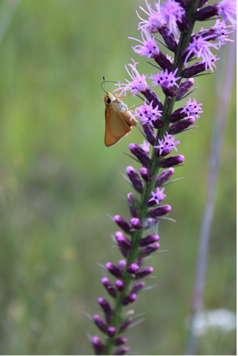 Skipper sp. drinks nectar from Dense blazing star (Liatris spicata)
